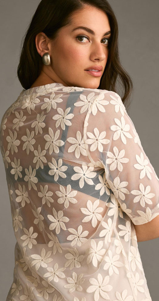Anthropologie Porridge Daisy Sheer Lace Tee