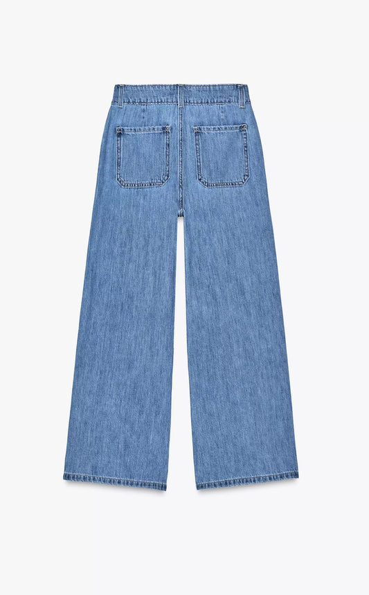 ZARA Z1975 High Rise Button Cropped Culotte Jeans