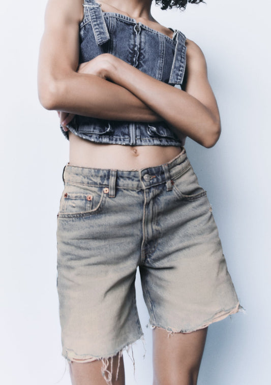 PRETTYLITTLETHING Light Blue Wash Ripped Hem Denim Shorts