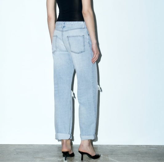 Kensie Effortless Two Tone Ankle Mid Rise Ankle Jeans