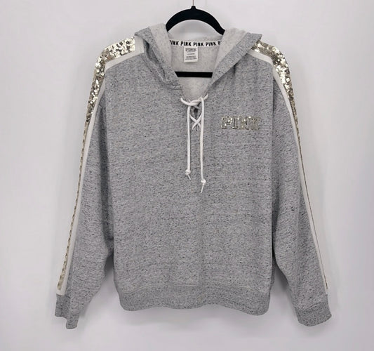 Victoria's Secret PINK Bling Rose Lace-Up Pullover Hoodie with Sequin Sleeves