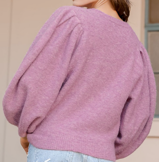 LUSH Don’t Stop Now Lilac Knit Balloon Sleeve Sweater