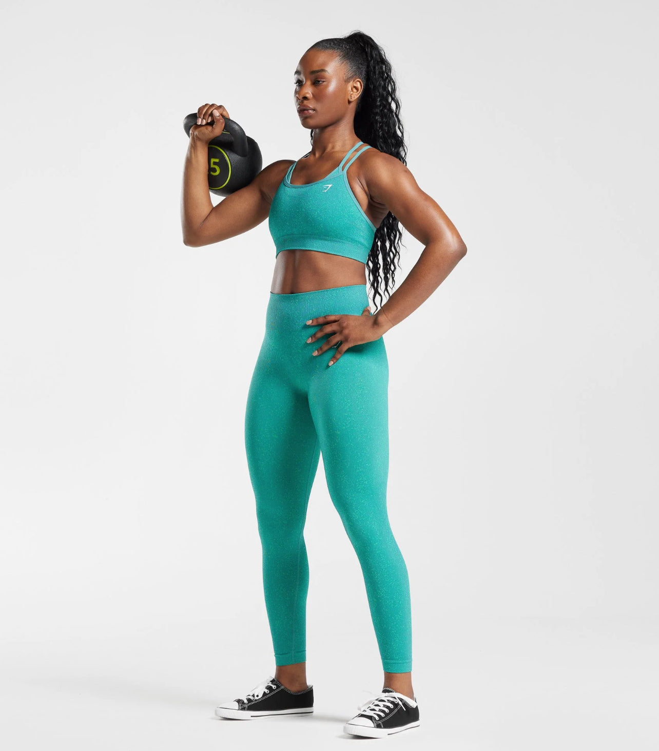 Optimize your lifting routine with Gymshark's Adapt Fleck Seamless Sports Bra. This medium support bra features a sweat-wicking finish, seamless stretch fabric, and a zero-distraction design for ultimate comfort and support during every workout. The double-layered construction and square neckline with cross over straps ensure maximum coverage and stability. Sporting an all-over mineral jacquard pattern and heat seal logo on the chest, this bras combines style and function seamlessly. Made with 79% nylon, 15% polyester, and 6% elastane, it offers a perfect fit every time.. SKU: B2A1D-EB3C.