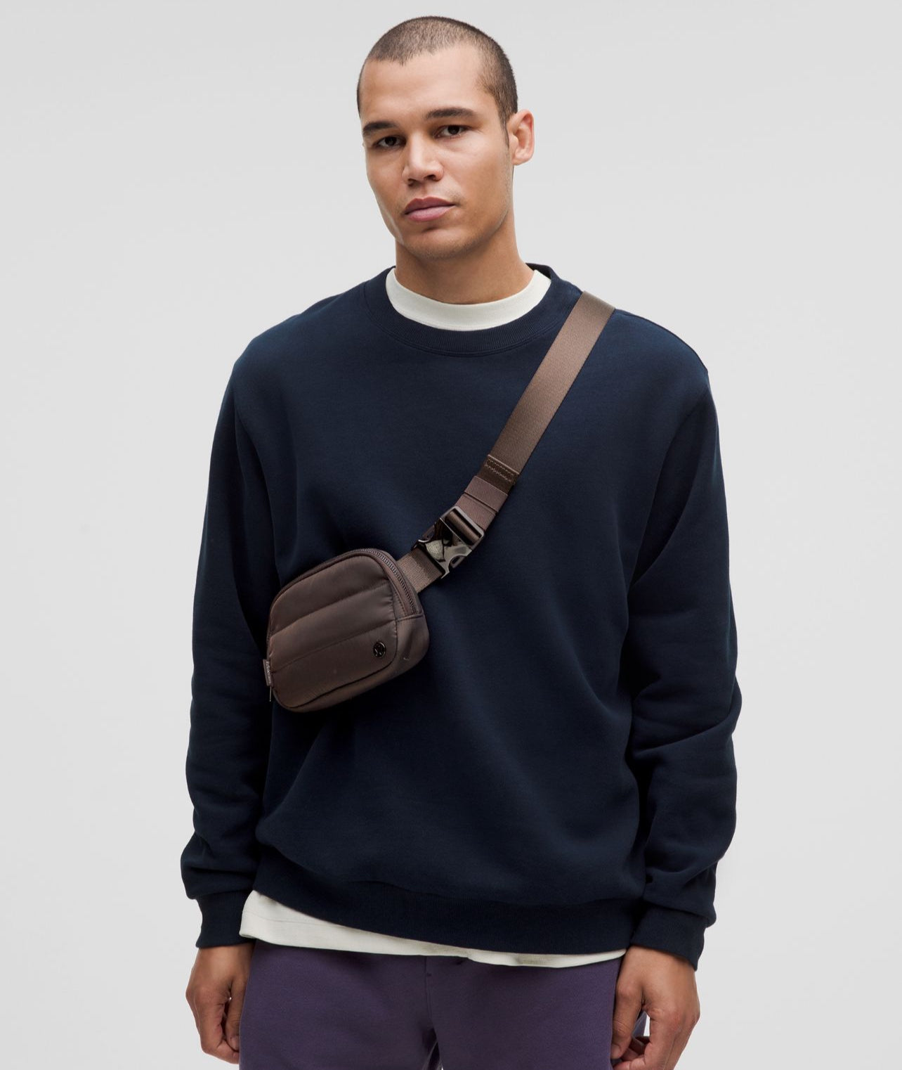 - Once you find your perfect fit, tuck the excess belt bag strap into the elastic loops