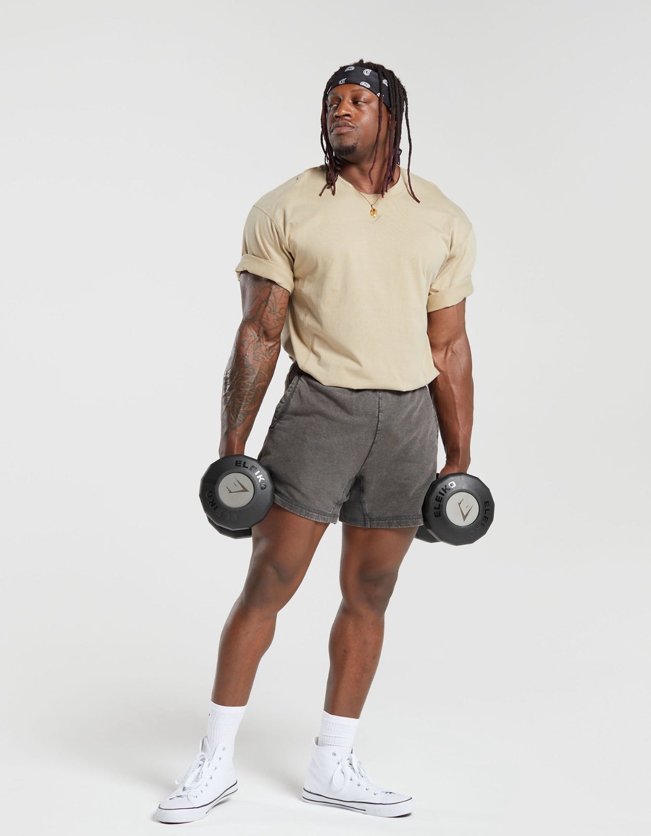 Experience a collection that honors the strength, stature, and rugged beauty of the Golden Era of bodybuilding with Gymshark's Heritage Washed T-Shirt. Made from premium washed fabric, this shirt boasts physique-accentuating seams for a superior fit. Available in an oversized style. Crafted from 100% cotton at 220gsm, please note that due to the dyeing and washing process, the color may slightly vary. To preserve its unique qualities, avoid contact with light-colored fabrics, surfaces, and upholstery.