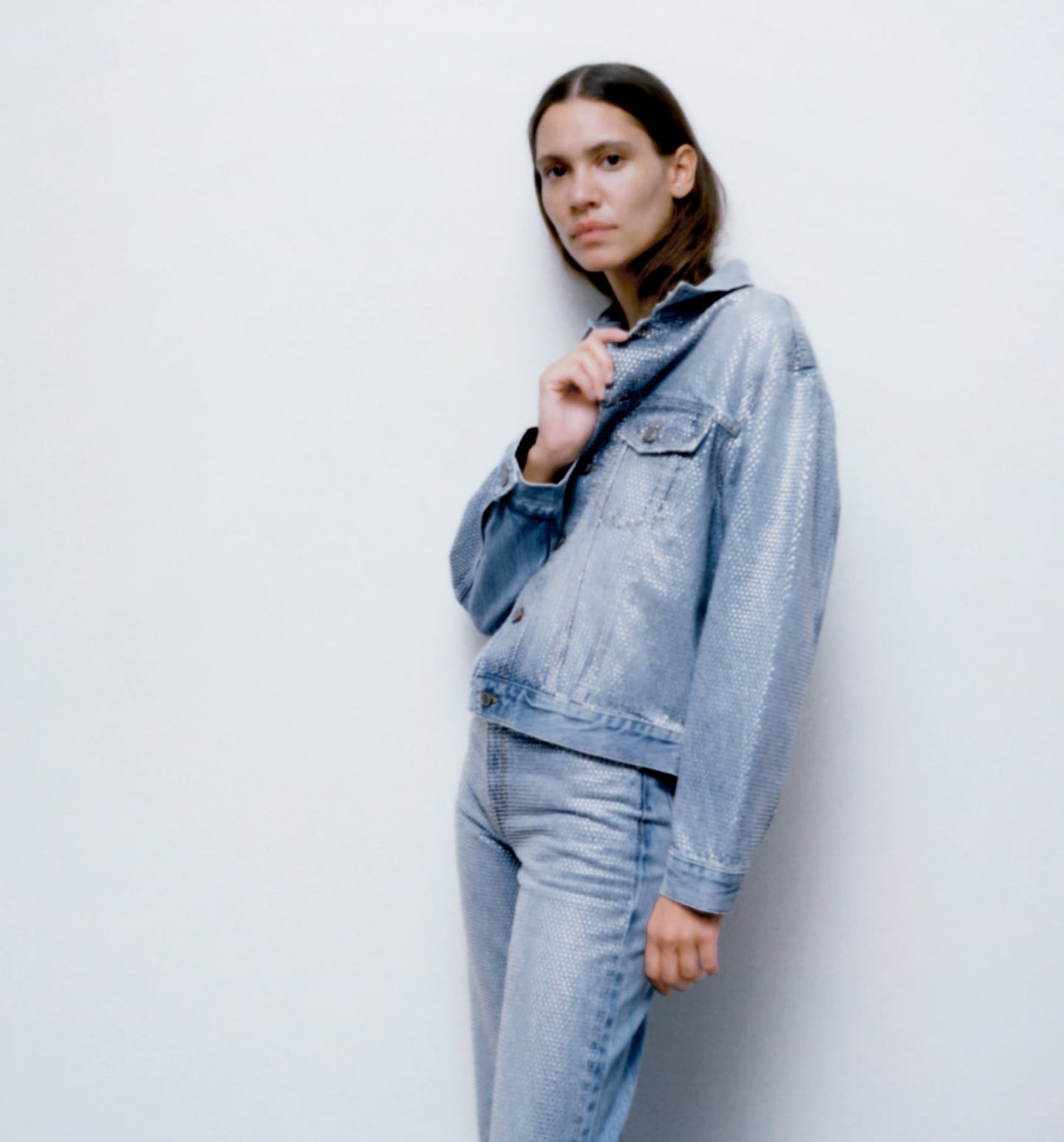 Zara Women Rhinestone Denim Jacket