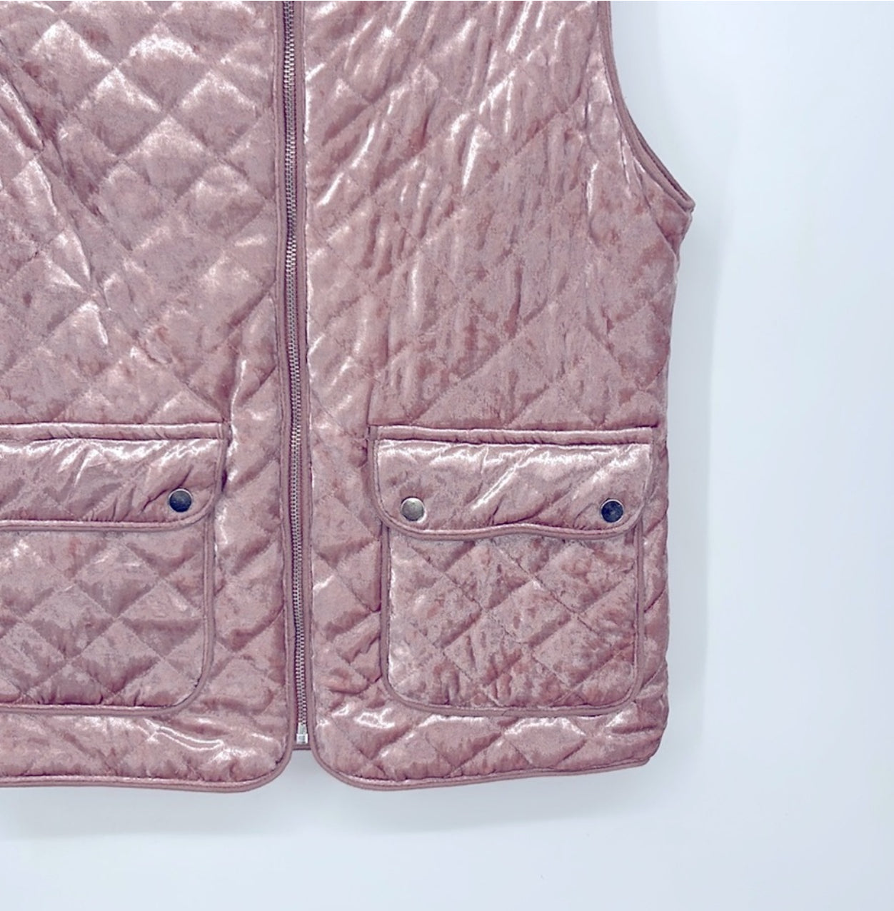 Featuring a front zipper, two snap button pockets and crafted from 96% polyester and 4% spandex, this Active USA Blush Quilted Vest in size small is in great pre-owned condition, measuring 18.5 from pit to pit and 22.25 in length.