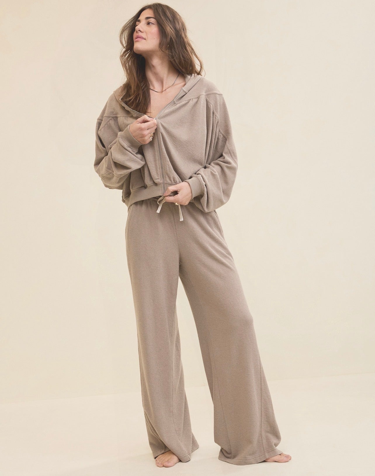 This one has us feeling all the vibes! The most beautiful texture combined with a convenient full zip makes it your ultimate layer!
