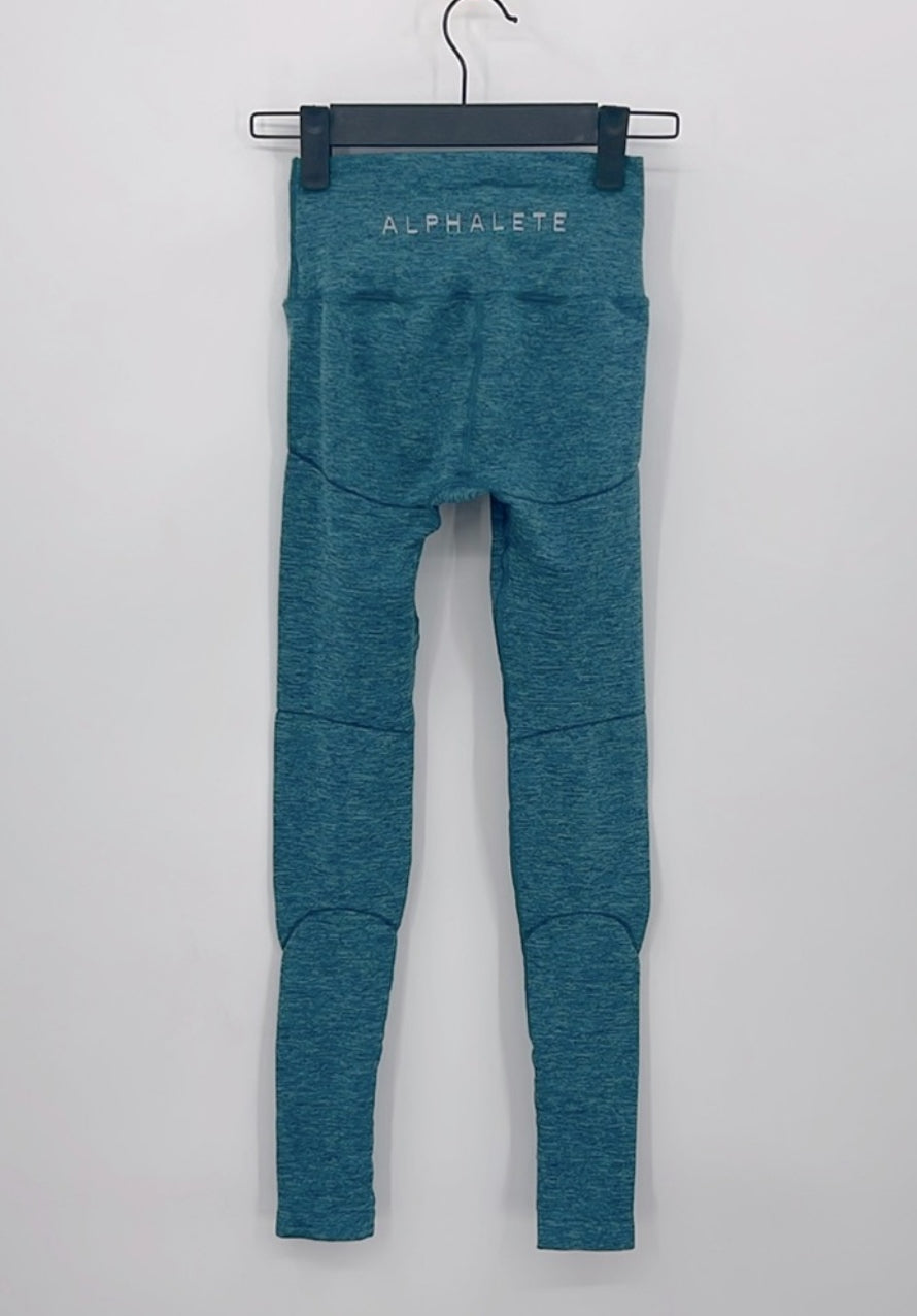 The Alphalete OG Revival Leggings are a stylish and functional option for any workout. With a high rise design, vibrant teal color, and size XS availability, these leggings offer both style and comfort. In good pre-owned condition, they are a reliable choice for any fitness enthusiast.