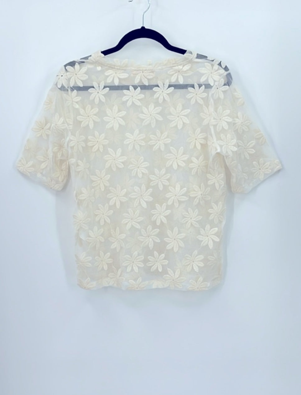 Anthropologie Porridge Daisy Sheer Lace Tee