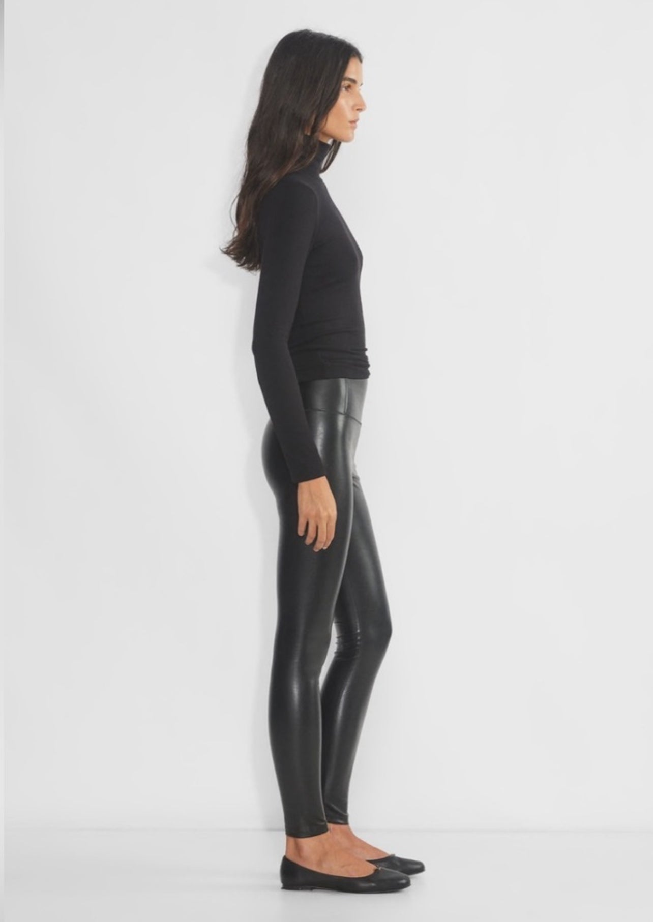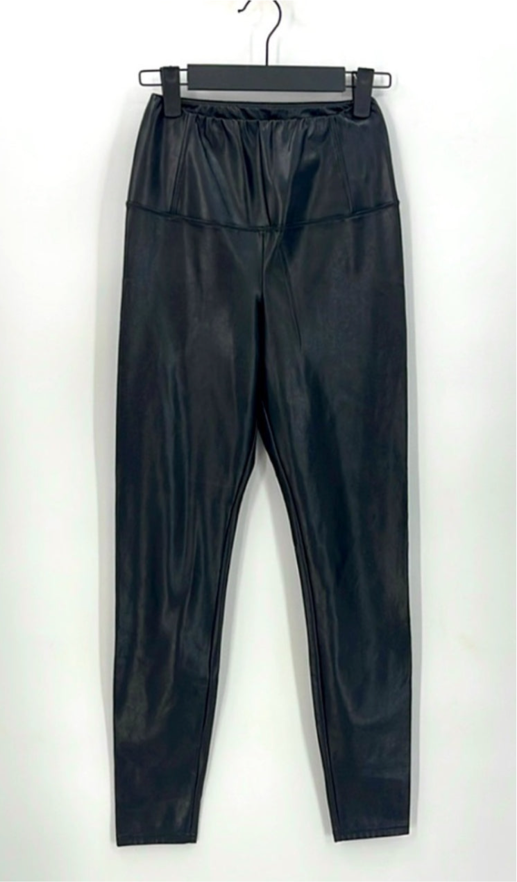 These leggings offer a snug fit and a wide waistband for a sleek appearance, featuring premium UnReal Leather from Japan for exceptional shape retention. With a close resemblance to real leather, they provide a luxurious feel without the high maintenance. This size XS pair is in excellent pre-owned condition.