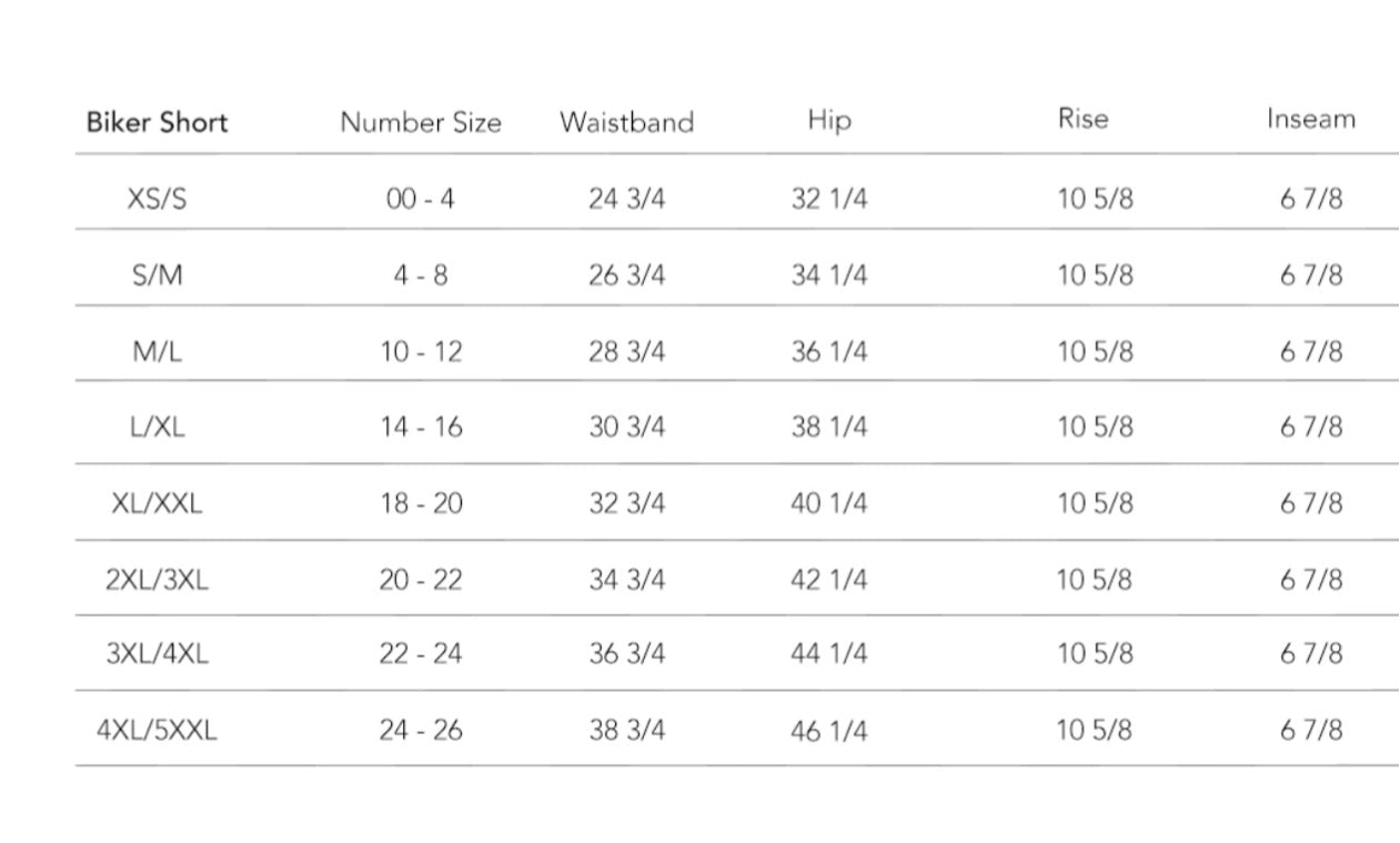 Bike Shorts fit true to size with a 7" inseam. This style features a 90% cotton and 10% spandex fabric blend for the perfect amount of stretch.