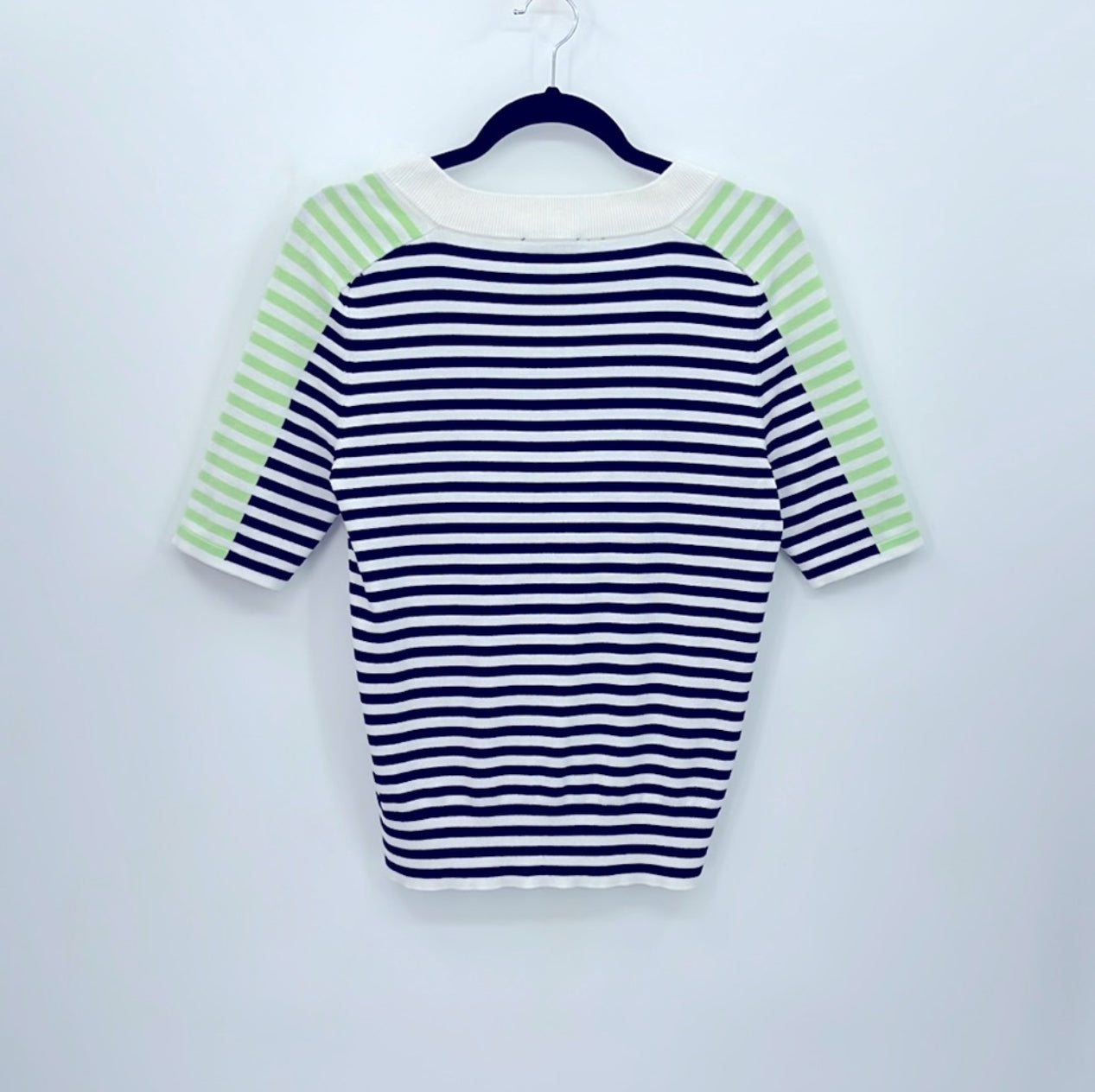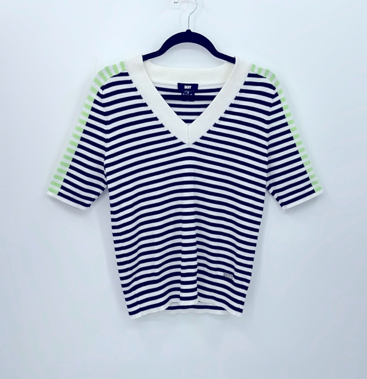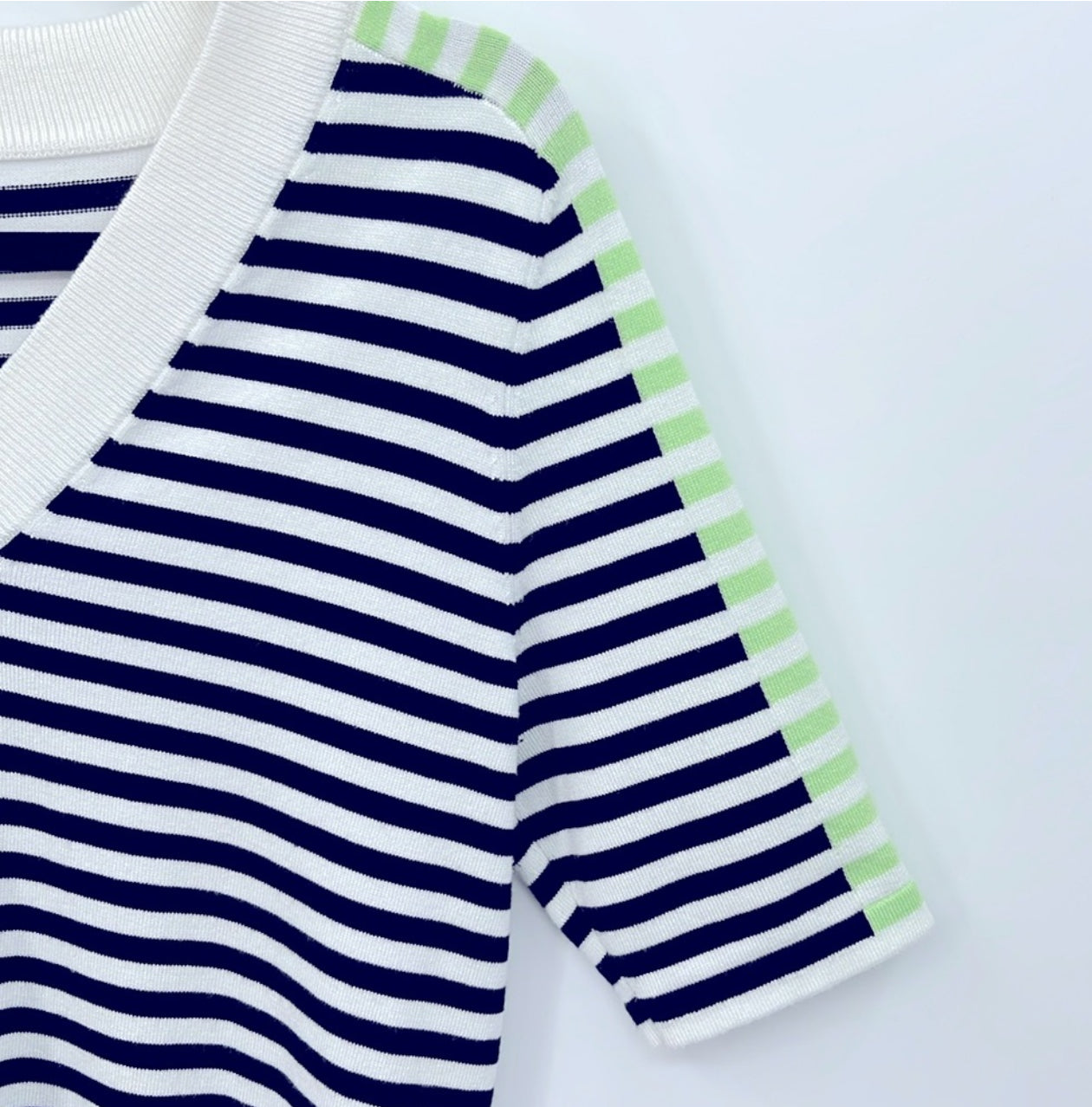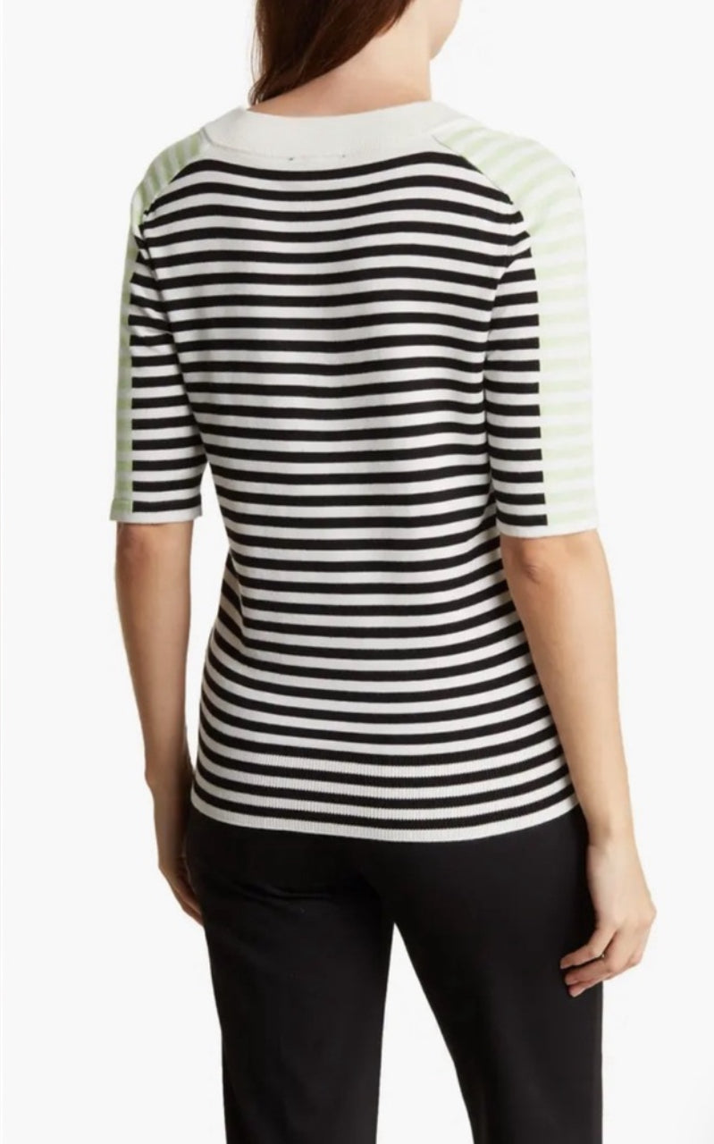 DKNY Stripe V-Neck Short Sleeve Sweater