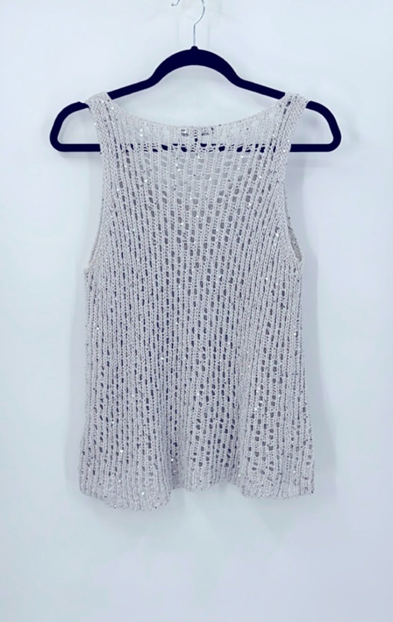 Eileen Fisher Silver Sequined Chain Mail Knit Tank