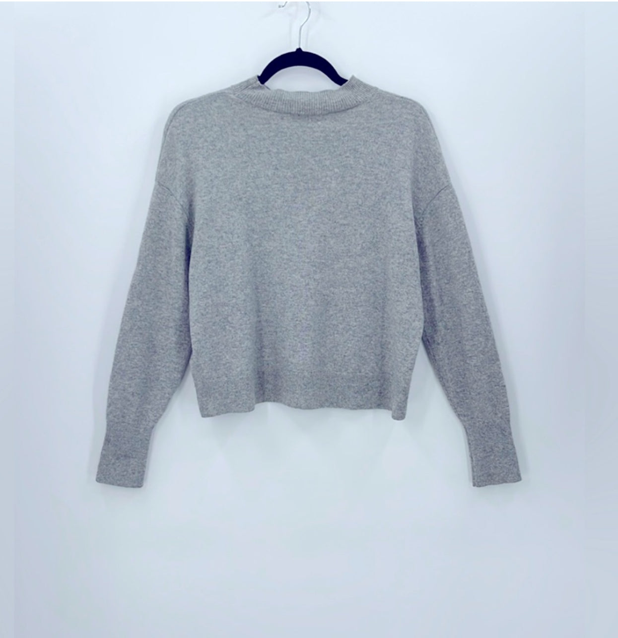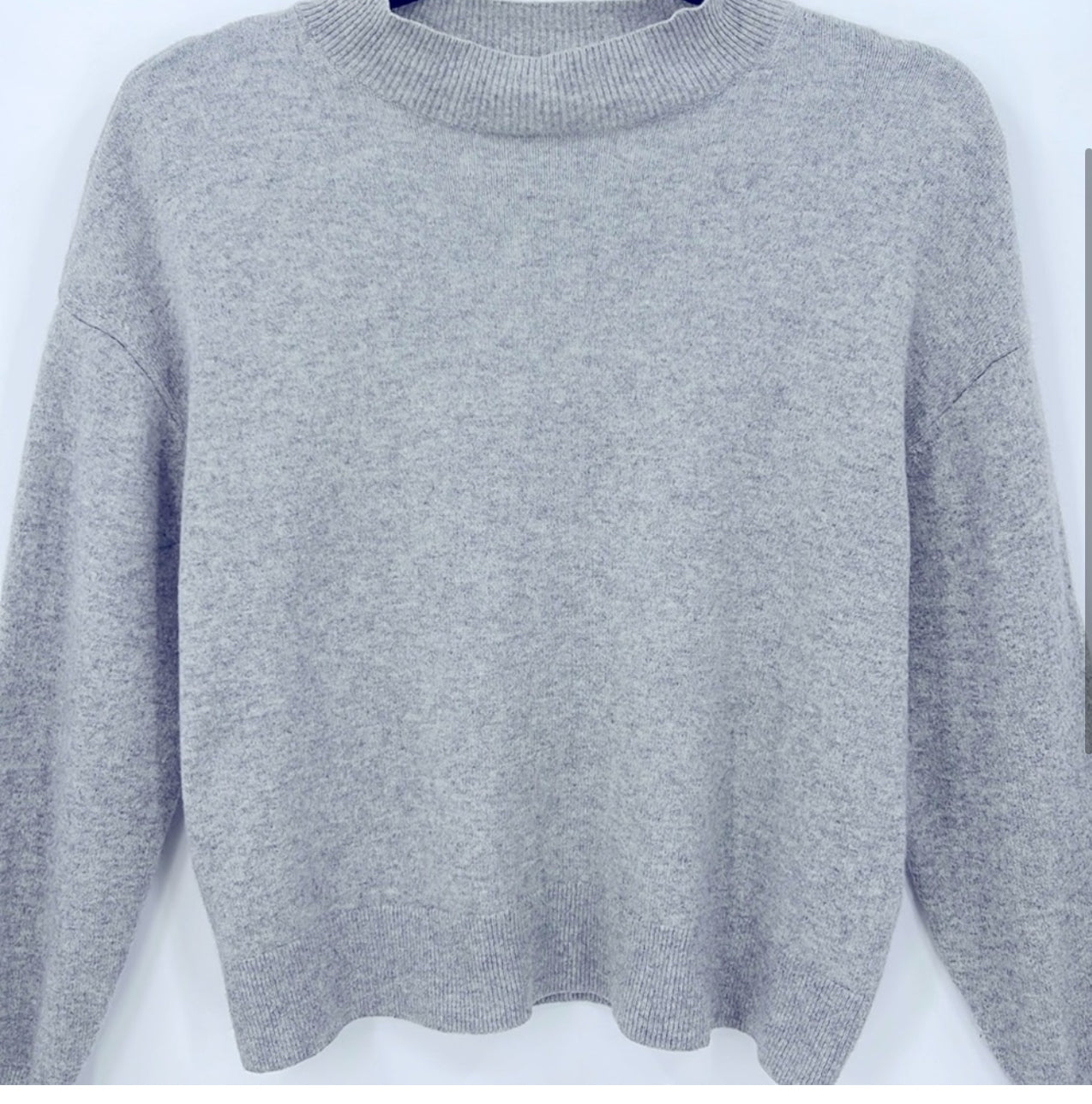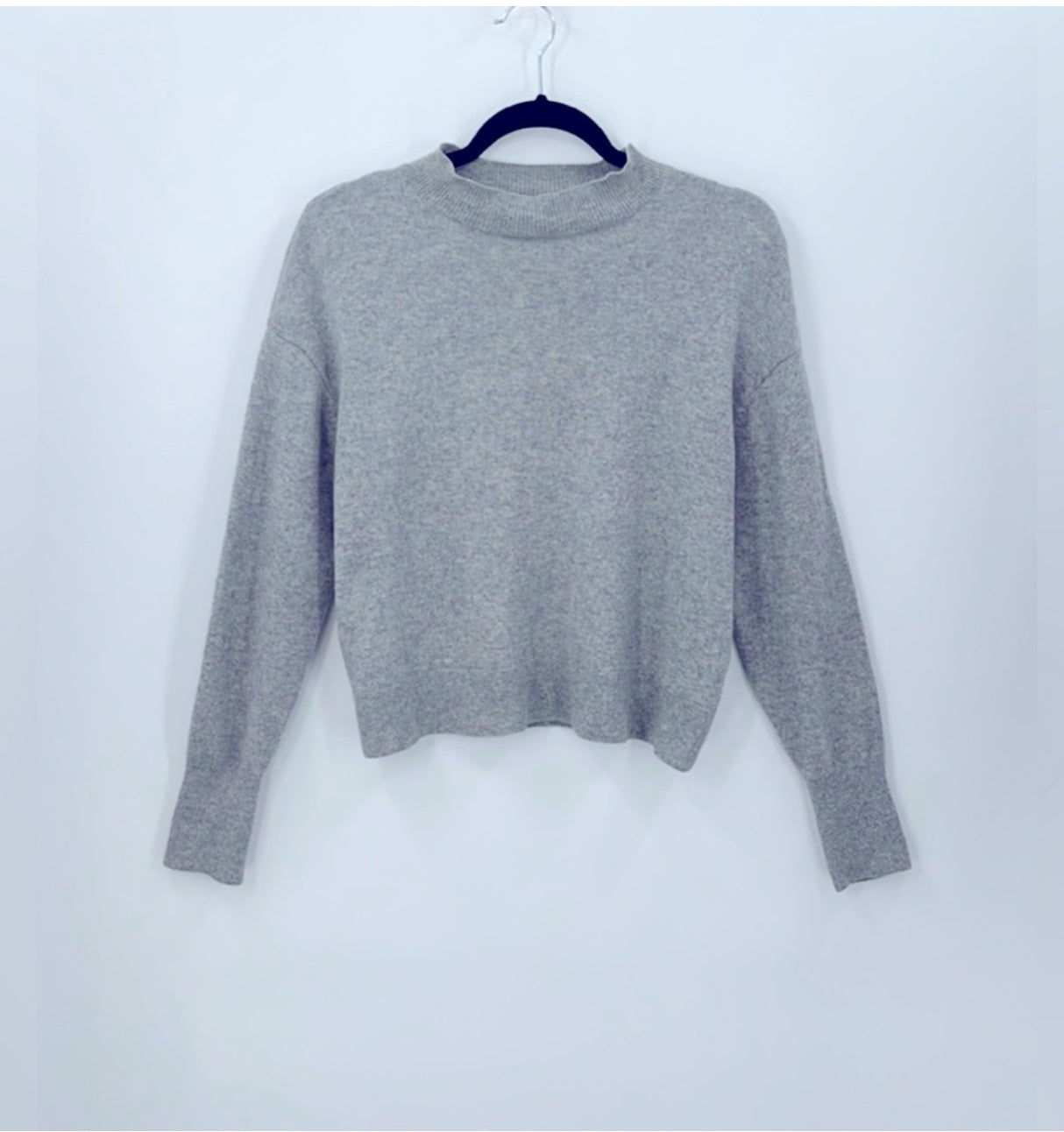 The EVERLANE Cashmere Mock Neck Sweater is a customer-favorite, bestselling and highly-rated must-have. Its relaxed and cozy fit, combined with a subtle mock neck, makes it a versatile addition to any wardrobe. Crafted with 100% cashmere, it provides both comfort and luxury. This sweater comes in a size small with approximate measurements of 21.5 inches pit to pit and a length of 20.5 inches. It is in good pre-owned condition, making it an excellent choice for any fashion-savvy individual.