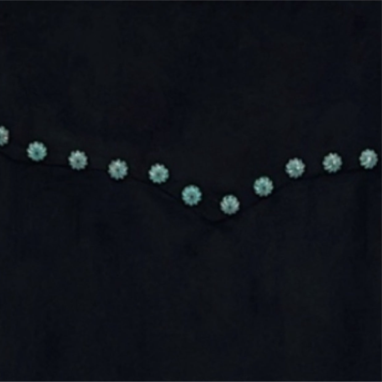 Expertly crafted with an elasticized waist, this skirt features intricate turquoise stud detailing and a stylish fringe hem. Made with 90% polyester and 10% spandex. Available in size large, with approximate measurements of 14 inches for the waist and 19.5 inches for the length. In excellent pre-owned condition, this skirt is a must-have for any fashionista.