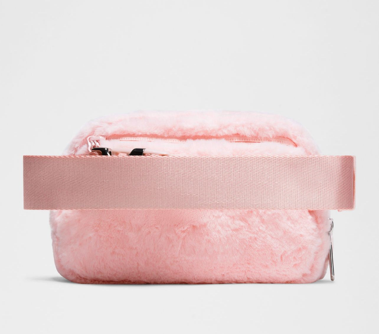- Once you find your perfect fit, tuck the excess belt bag strap into the elastic loops