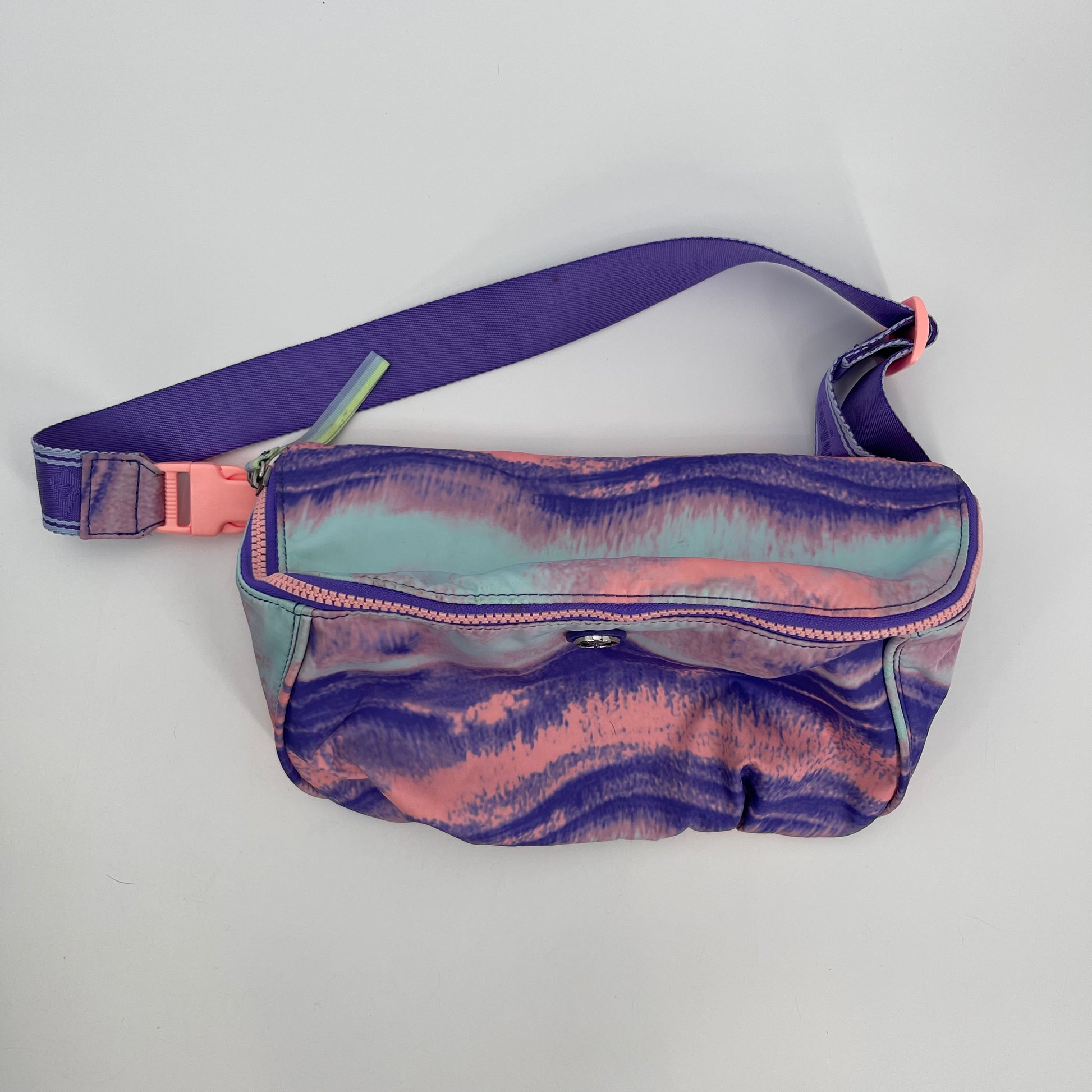 Lululemon Ivivva Around About Bag, in excellent pre-owned condition. This versatile bag can be worn around the hips or shoulders, offering lightweight portability. It features a secure zipper closure to keep your essentials safe and an easy-access slip pocket for frequently used items. The bag measures 11.5" in width, 6.5" in height, and 5" in depth. The interior includes one mesh slip pocket for added organization. The adjustable strap with a buckle clip closure ensures a comfortable and customizable fit. Get ready to carry your belongings in style with this convenient and well-maintained pre-owned bag.