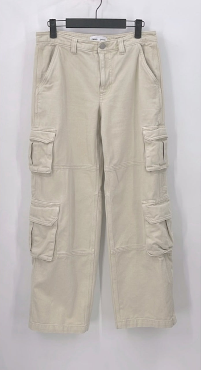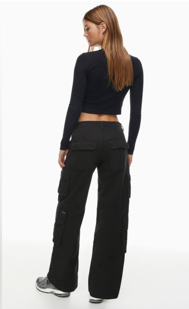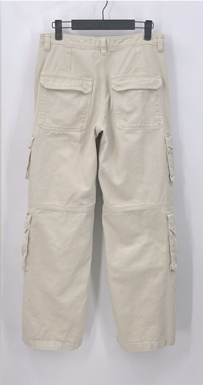These cargo pants have a low rise and are designed with utility detailing and a double set of cargo pants, perfect for carrying your essentials with style and practicality. Made with HangTough fabric, these pants have a midweight 100% cotton construction that gives them a workwear-inspired look and a soft, lived-in feel. They feature a zip fly with button closure, cargo pockets with flaps, back patch pockets with flaps, and slash front pockets. The topstitch detailing throughout adds a touch of sophistication, and the exclusive Tna embroidery adds a unique touch. These pants are made of 100% cotton and are machine washable, making it easy to care for them. Available in size 6, these pants are in great pre-owned condition.