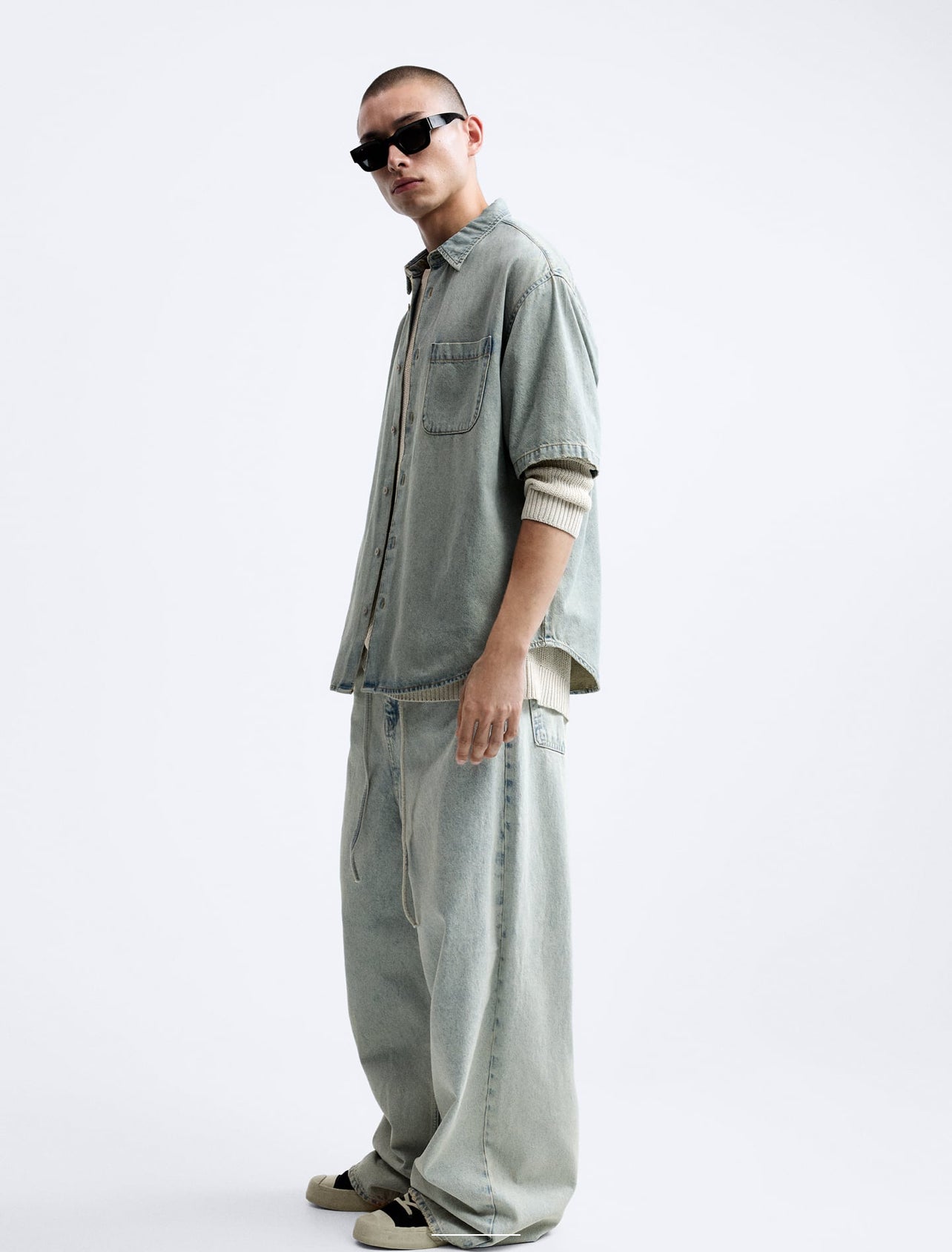 This light denim shirt boasts a relaxed fit and lapel collar, with short sleeves and a front button closure. Complete with a chest patch pocket and a washed effect, this blue shirt is made from 100% cotton for a comfortable and stylish addition to your wardrobe.