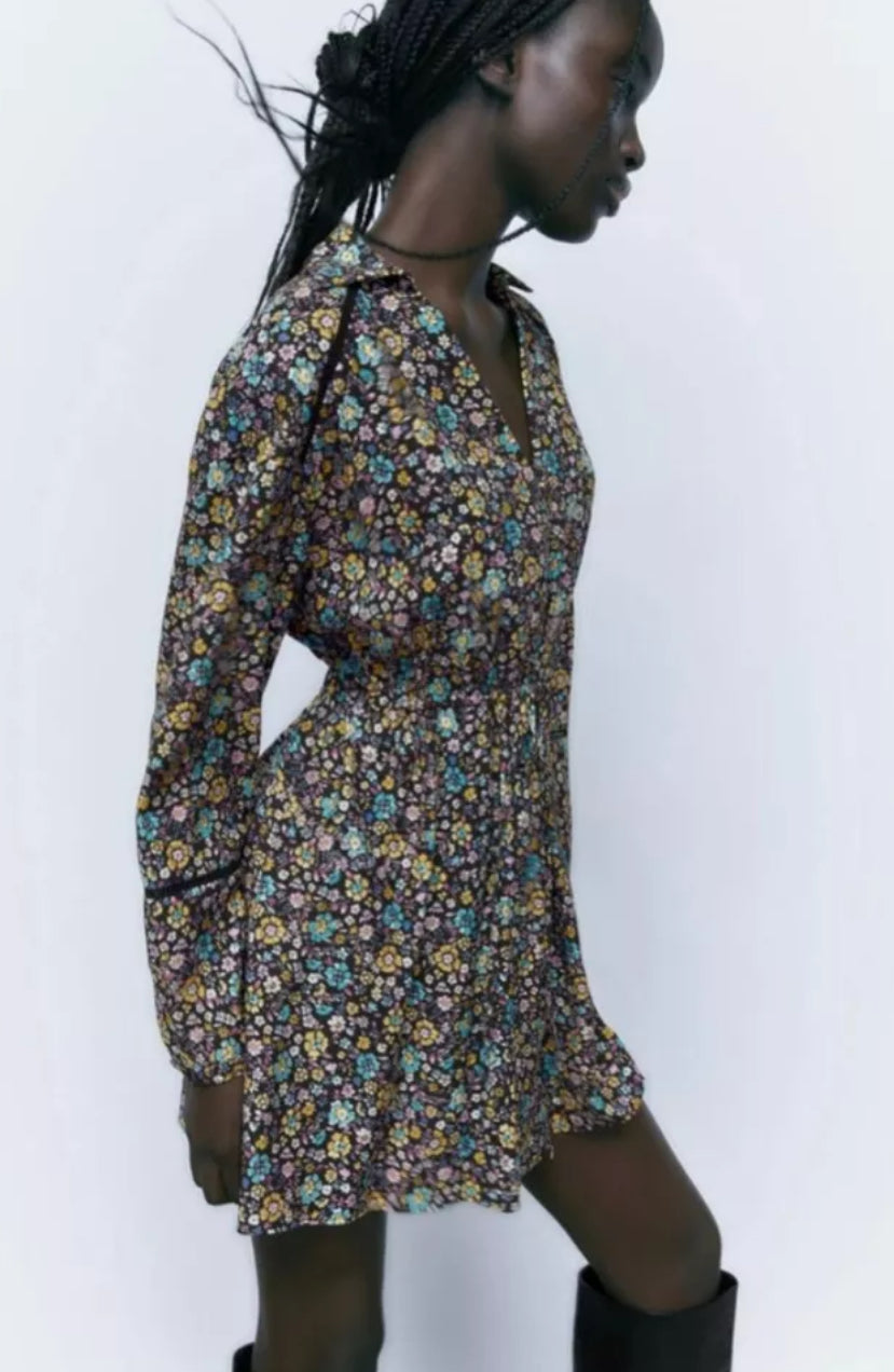 Stunning lapel collar dress with a V-neckline and long, flowing sleeves. An eye-catching contrast lace insert adds an extra level of sophistication. The adjustable self-drawstring waist ensures a perfect fit, and the front button closure gives it a stylish finishing touch.