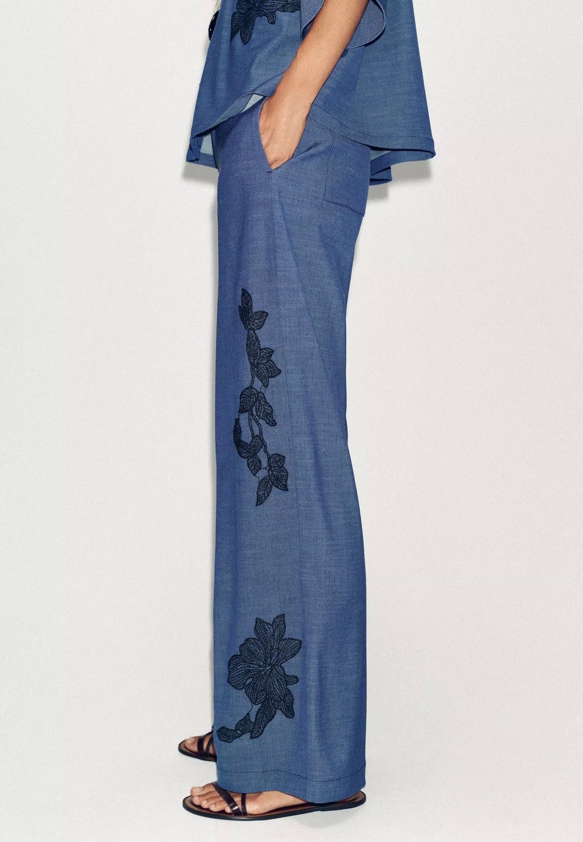 ZARA Floral Wide Leg Pants