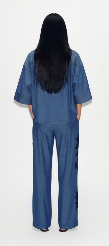 Elevated high-waisted trousers featuring side pockets and back patch pockets for a functional yet stylish touch.