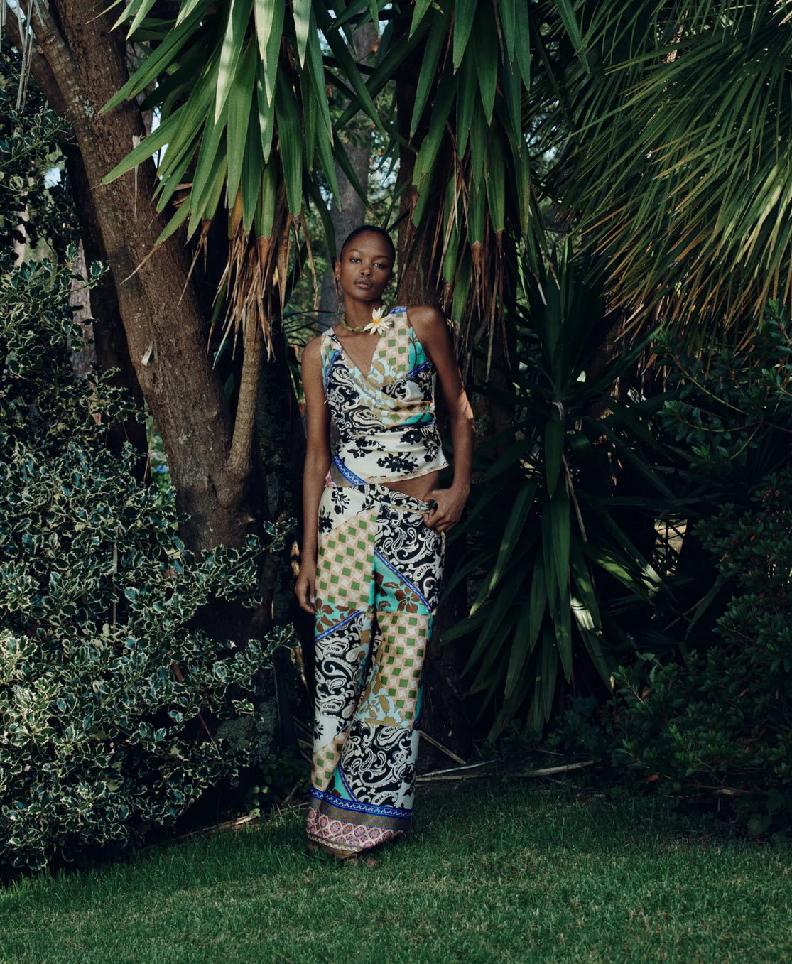 ZARA Patchwork Print Satin Top