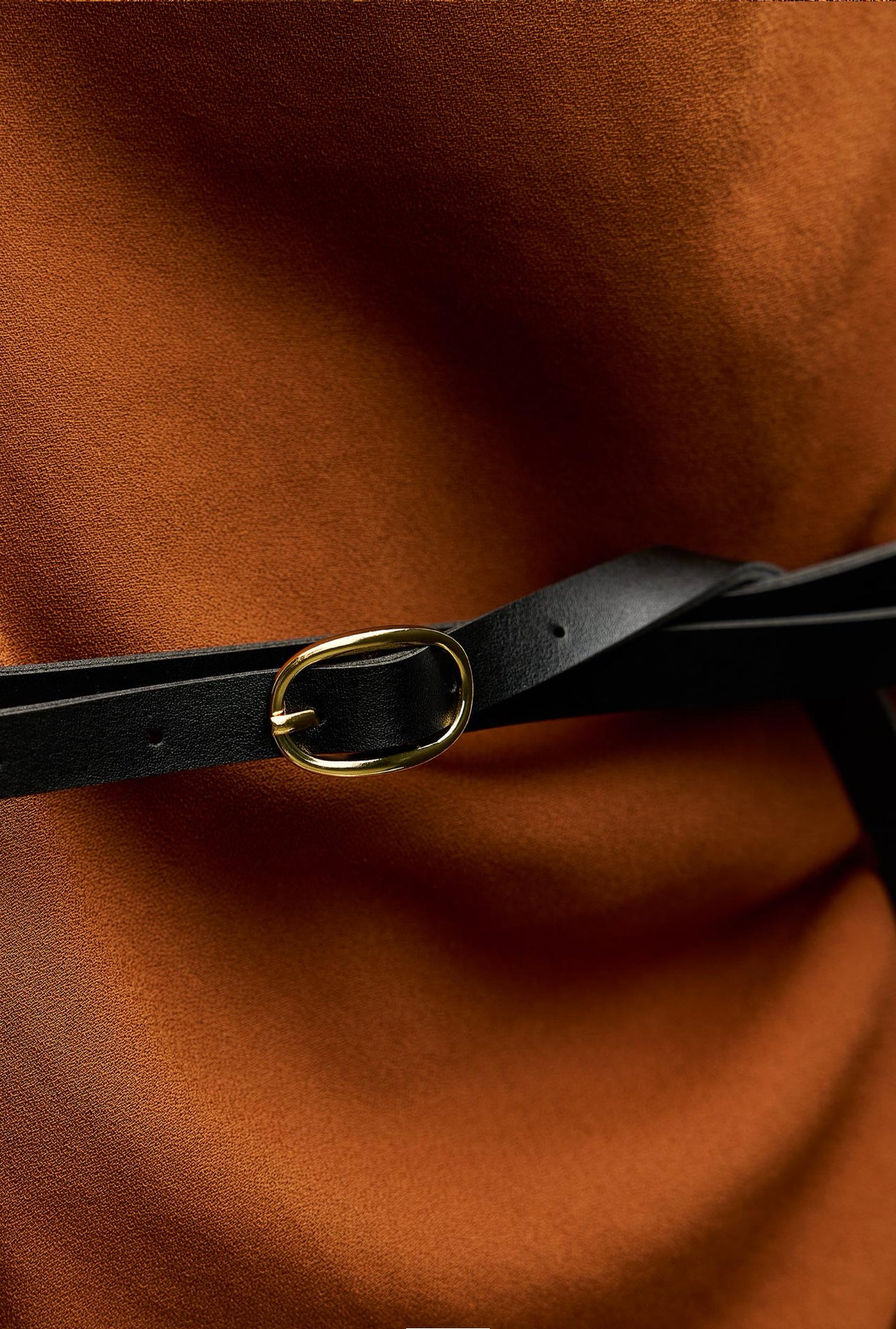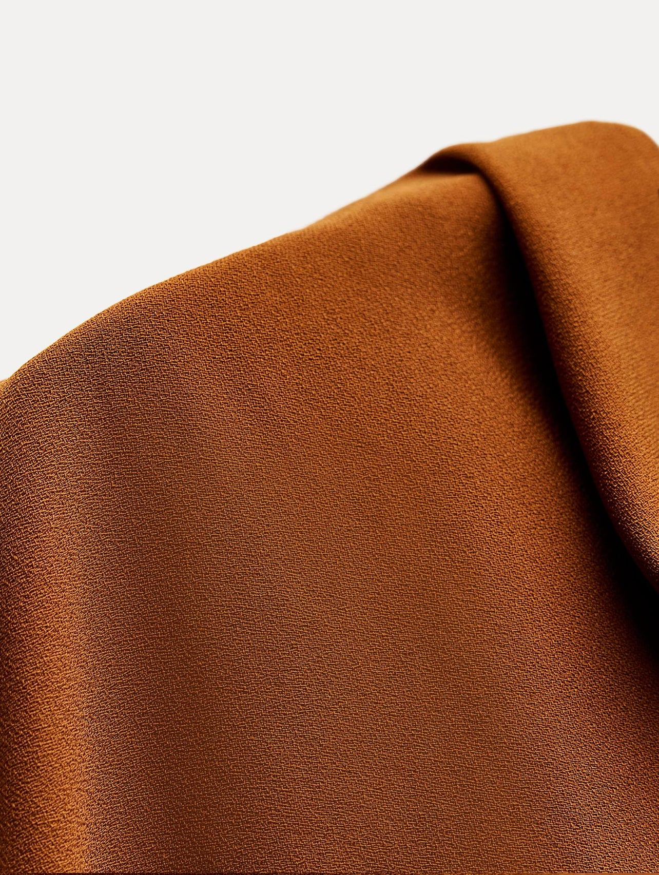 Introducing ZARA Women's Collection, featuring a stunning sleeveless midi dress with a flowing neckline that will captivate and inspire. Customize your look with the adjustable metal buckle belt, adding a touch of elegance to this garment. In a bold dark orange shade, this dress exudes confidence and passion. Crafted from 100% polyester, this piece is both high-quality and easy to care for. Embrace the beauty and origin of this dress and elevate your wardrobe today.